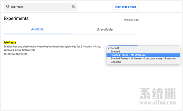 目前,该功能默认是关闭的,大家需要手动开启。首先,在浏览器地址栏复制输入Chrome://flags,进入实验性功能界面。在顶部框搜索Tab Freeze,将其设为Enabled Freeze-No Unfreeze,即可开启。